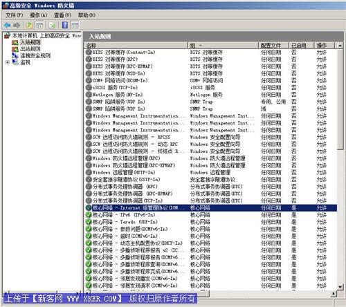 图7、Windows 2008 Server高级防火墙默认入站规则
