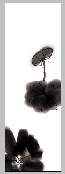 3、现在开始画了,尺寸、布局可以事先在纸上画一下,也可以找幅国画借鉴下。 调节画笔的大小、透明度画出荷花的叶子。