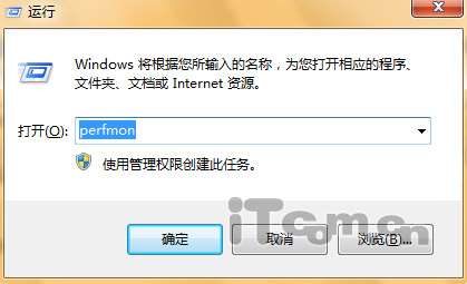 2、输入“perfmon”, 然后回车