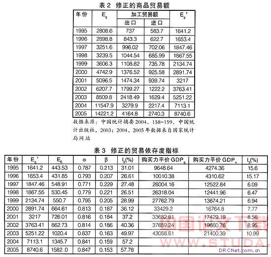 在公式(2)的基础上,考虑加工贸易,最后修正的外贸依存度计算公式为: