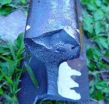 Fig1 The rail tread oblique cracks in Guangzhou-Shenzhen Quasi High-speed Railway