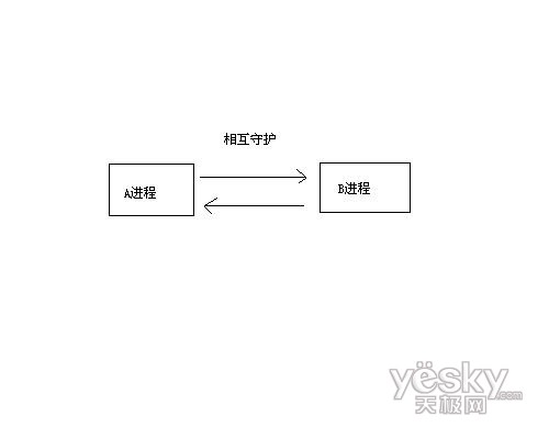 双进程病毒取胜的“奥秘”就在进程上,两个进程相互守护,其中一个进程判断另一个进程被结束后,就将被结束的进程立即恢复。也就是说,如果无法同时终止两个进程,它们就会无限复活(图1)。