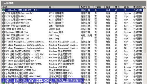 图7、Windows 2008 Server高级防火墙默认入站规则