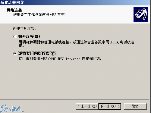 (4)选择虚拟专用网络连接,点击下一步;