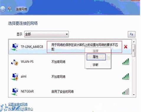 在该信号上右键,选择属性—安全,将安全类型、加密类型及安全密匙修改为和无线路由器中设置相同即可。