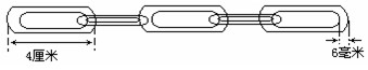 4. 下图是五个大小相同的铁环连在一起的图形。它的长度是多少?十个这样的铁环连在一起有多长?